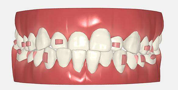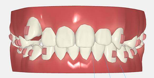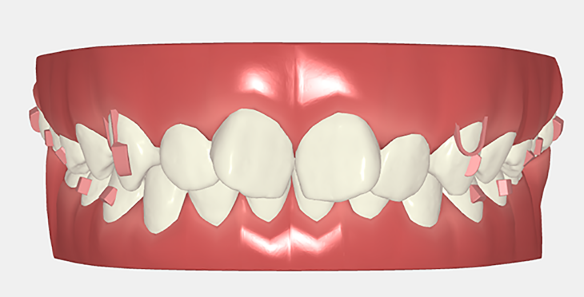 Pacjent ze stłoczeniem zębów wymagającym stworzenia dodatkowej przestrzeni w łuku oraz wyrównania ustawienia zębów. Plan leczenia zakładał stopniową korektę położenia zębów i poprawę relacji zgryzowych. Całkowity czas leczenia wyniósł około 2 lata.