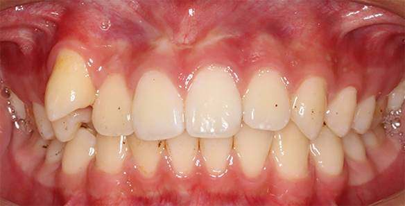 Pacjent z przednim przodozgryzem, wymagający korekty relacji między łukami zębowymi oraz ustawienia zębów w odcinku przednim. Plan leczenia obejmował wyrównanie zgryzu i przywrócenie prawidłowej funkcji żucia. Całkowity czas leczenia wyniósł około 1 roku.